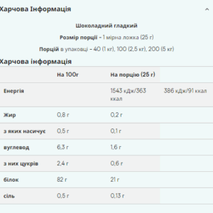 Змішайте 1 порцію 25 гр із 300 мл води, молока або будь-якої іншої рідини. Найкращий час для використання – після тренування або перед сном.