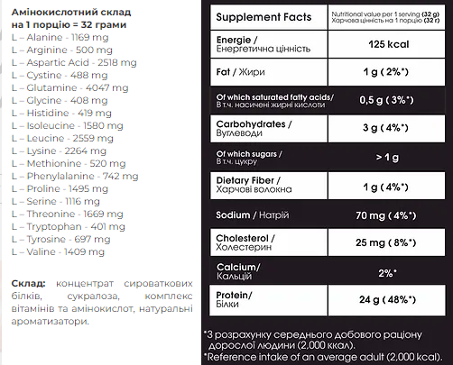Протеїн вирізняється серед інших високим вмістом глютаміну – близько 4000 mg на порцію – амінокислоти, яка вкрай необхідна для відновлення організму після тренування.