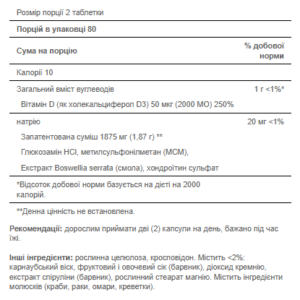 Puritan's Pride 7 Formula Joint Soother® Glucosamine, Chondroitin, MSM & Boswellia завдяки унікальному складу інгредієнтів (глюкозамін, хондроїтин і спеціальна суміш) допомагає підтримувати рухливість і гнучкість. Також до складу спеціальної суміші входить екстракт Босвеллії, який має потужну протизапальну та антиеластазну дію на організм. Тому використовується для заспокоювання чутливої шкіри, лікування пошкодженої шкіри, в антивікових засобах для підтримки та відновлення еластичності та пружності шкіри.