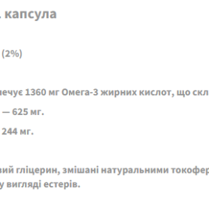 Інші інгредієнти: рослинна целюлоза, повідон. Містить <2%: натуральний карамельний барвник, натуральну глазур з пальмового листя, діоксид кремнію, барвник діоксид титану, рослинний стеарат магнію. Містить інгредієнти з молюсків (крабів, раків, омарів, креветок).