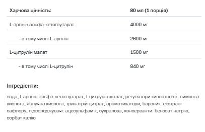 ВИСОКИЙ ВМІСТ AAKG ТА L-ЦИТРУЛІНУ МАЛАТУ