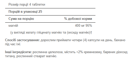 (as Magnesium Glycinate Chelate† and (Magnesium Oxide)