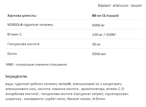Щоб виправдати ваші очікування, ми підготували ваш улюблений колагеновий продукт COLLAROSE FISH у формі зручного шоту. Кожна пляшка об’ємом 80 мл містить повну порцію COLLAROSE FISH SHOT, готової до вживання, зі смаком апельсина та вишні , яку ви завжди можете мати при собі. Якщо час для вас безцінний або ви не любите «бавитися» в приготування, розчинення добавок у вигляді порошку, ця форма прийому продукту для вас. Ось чому COLLAROSE FISH SHOT – ідеальний питний колаген.