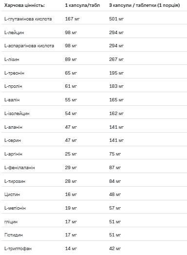 Amino Complex – це концентрат протеїну в таблетках найвищої якості. Він містить повний комплекс амінокислот, необхідних досягнення високих темпів прогресу у спортивної формі. Добавка діє антикатаболічно, прискорює регенерацію після інтенсивних тренувань, сприяє збільшенню сили та м'язової маси. Призначений для підтримки у всіх видах спорту.