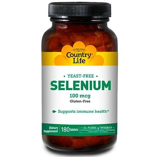 Дієтична добавка Селен від ТМ Country Life є додатковим джерелом селену, 1 таблетка препарату покриває добову потребу організму в цьому мікроелементі. Препарат не містить молока, сої, дріжджів, кукурудзи, пшениці, солі, цукру, консервантів і барвників.