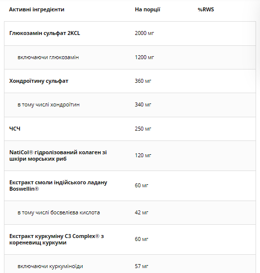 Комбінація глюкозаміну сульфату та хондроїтину сульфату, які регенерують суглоби.