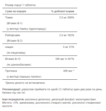 Цей продукт поєднує вітаміни B-1 (тіамін), B-2 (рибофлавін), B-3 (ніацин) і B-12 з натуральних джерел. Вітаміни групи B беруть участь в енергетичному обміні та допомагають підтримувати здоров'я нервів та серце.