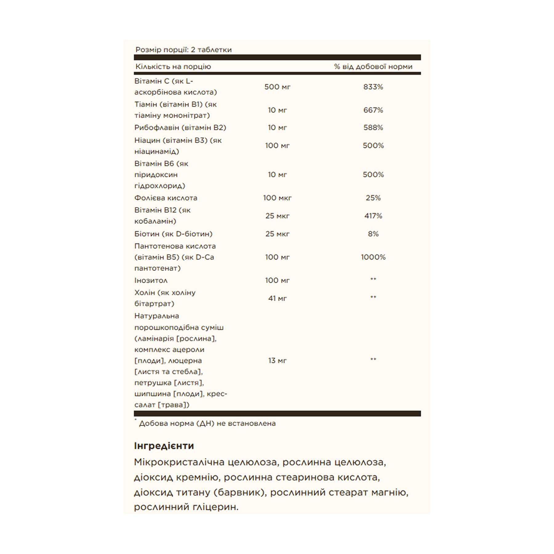 Комплекс вітамінів групи В необхідний для метаболізму вуглеводів, жирів і білків, які перетворюють їжу в енергію.