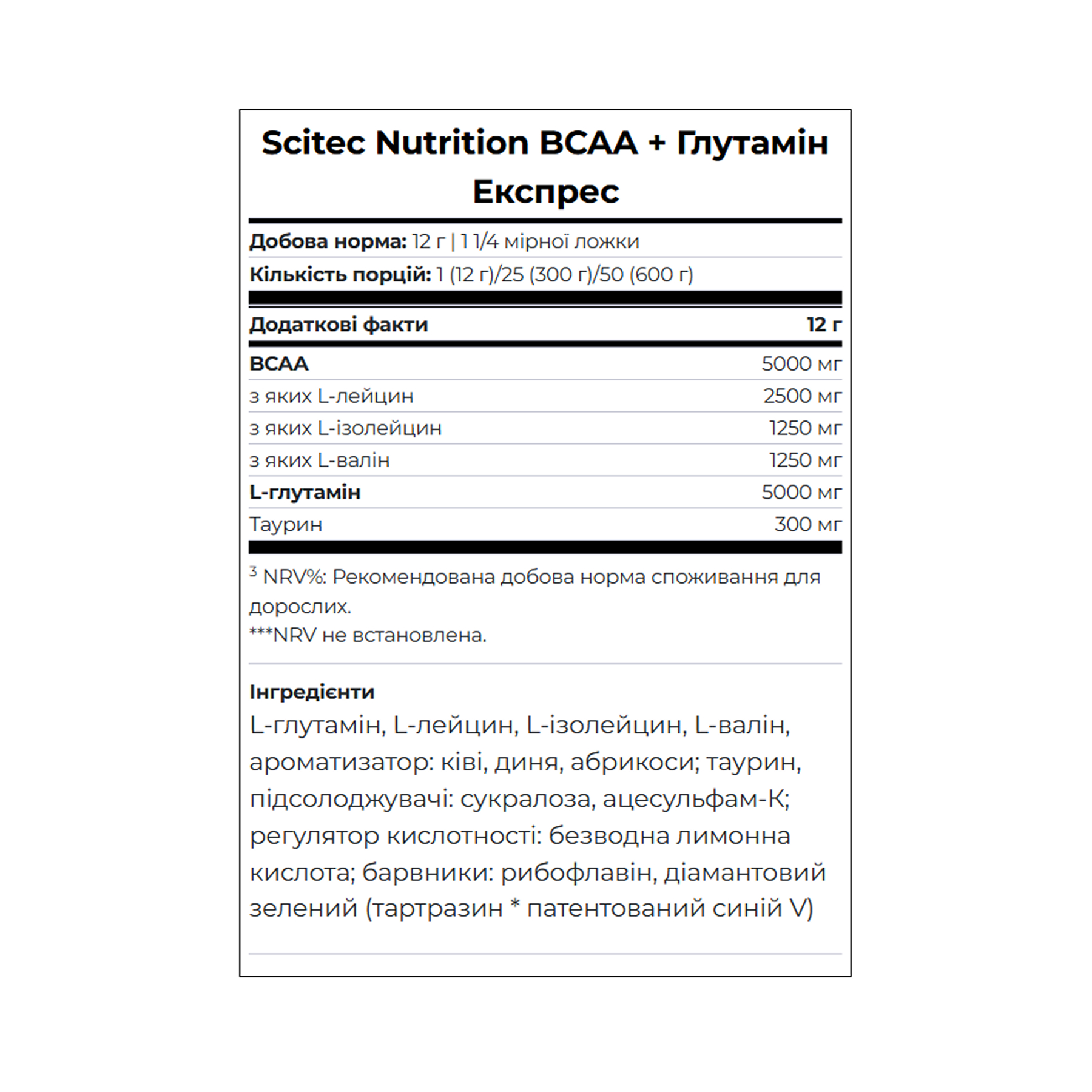 Крім комплексу BCAA, добавка містить глютамін — ще одну важливу амінокислоту з потужними антикатаболічними властивостями. Глютамін сприяє зростанню м’язової маси, відновленню та зниженню втоми після інтенсивних тренувань.
