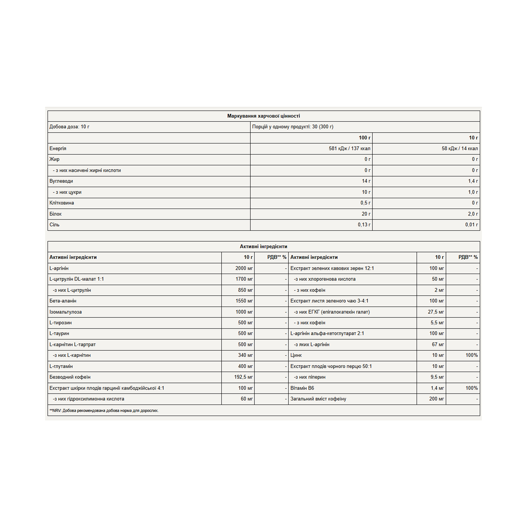 Змішайте одну порцію (10 г) у 300 мл води. Не вживайте протягом 4 годин перед сном! Для точного дозування, будь ласка, виміряйте. Споживайте одразу після приготування! Рекомендована добова норма споживання – 1 порція. Щоб створити дієту, яка відповідає вашим індивідуальним потребам, рекомендуємо проконсультуватися з дієтологом.