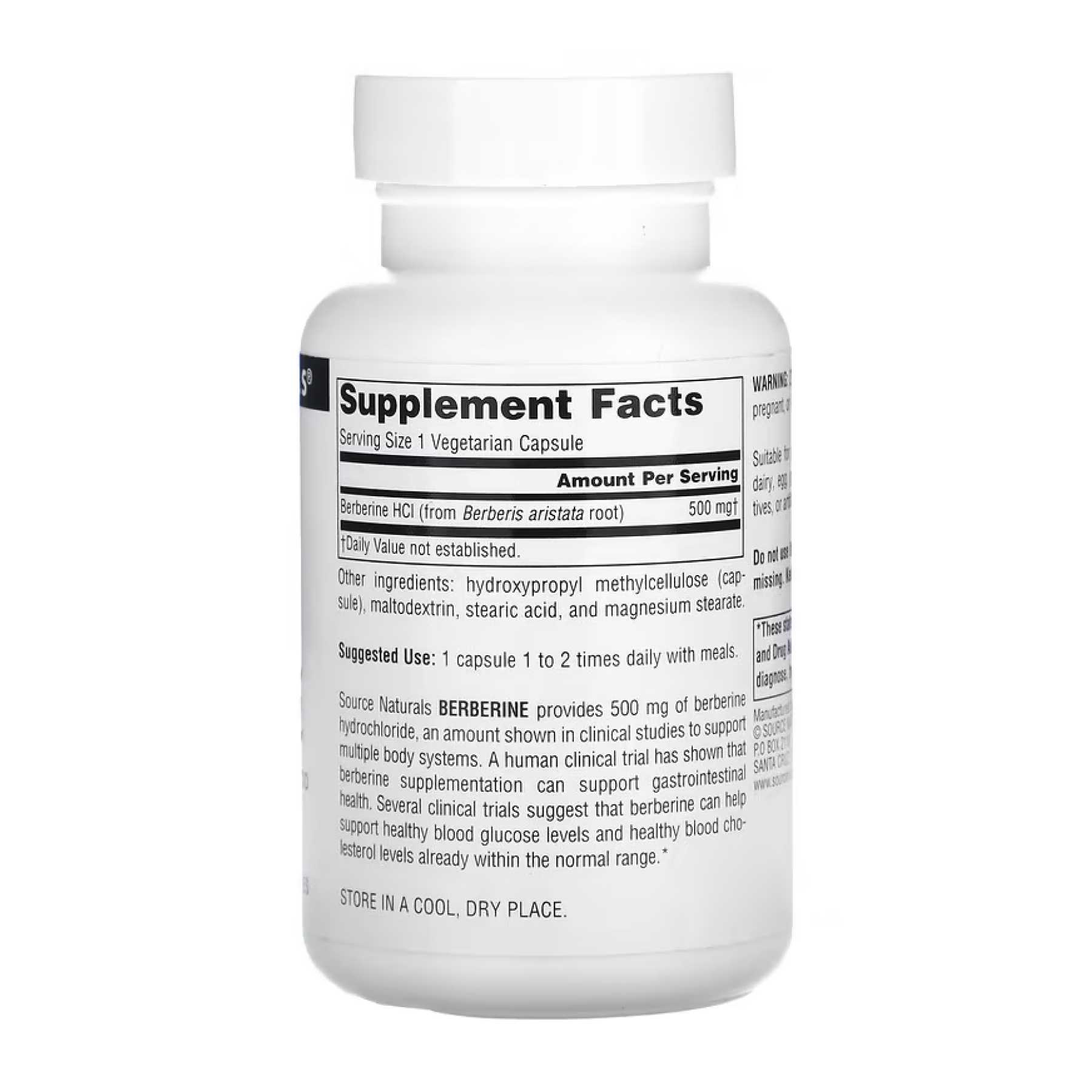 Берберин від Source Naturals містить 500 мг берберину гідрохлориду. Клінічні дослідження показали, що така кількість підтримує кілька систем в організмі. Клінічні випробування на людях показали, що добавки з берберином можуть підтримувати здоров’я шлунково-кишкового тракту. Кілька клінічних випробувань продемонстрували, що берберин може допомогти підтримувати нормальні рівні глюкози та холестерину в крові, що вже перебувають у межах норми.