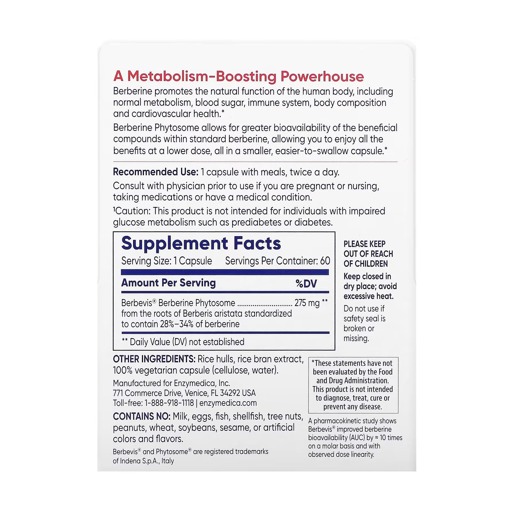 Фітосома берберину забезпечує вищу біодоступність корисних сполук зі стандартного берберину, що дає змогу насолоджуватися всіма перевагами за меншої дози в меншій капсулі, яку легше ковтати.