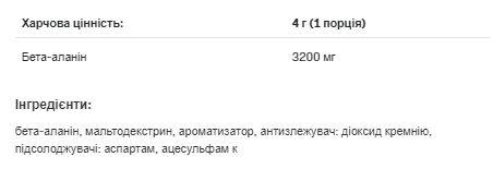 ALLNUTRITION – BETA ALANINE – це добавка на основі амінокислоти бета-аланіну з додаванням таурину та вітаміну B6 (для версії без смаку). Бета-аланін – органічна хімічна сполука з групи амінокислот. Це сильний попередник карнозину, який згладжує падіння pH, пов'язане, серед іншого, з утворенням молочної кислоти в м'язах при фізичному навантаженні. З цієї причини це відмінна добавка після тренування, яка впливає на регенерацію, знижує фізичну втому і має антикатаболічний ефект.