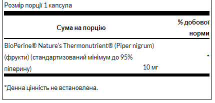 Якщо ви запитуєте себе: “Що таке BioPerine?” або «Які переваги BioPerine?» ви прийшли в потрібне місце для відповіді! Swanson BioPerine Nutrient Absorption Enhancer — єдина добавка, завдяки якій усі інші працюють краще. BioPerine, стандартизований екстракт чорного перцю (piper nigrum), є єдиним продуктом з піперину, який отримав запатентований статус за його здатність підвищувати біодоступність поживних сполук. Це також єдине джерело піперину, яке пройшло клінічні дослідження в США для підтвердження його безпеки та ефективності.