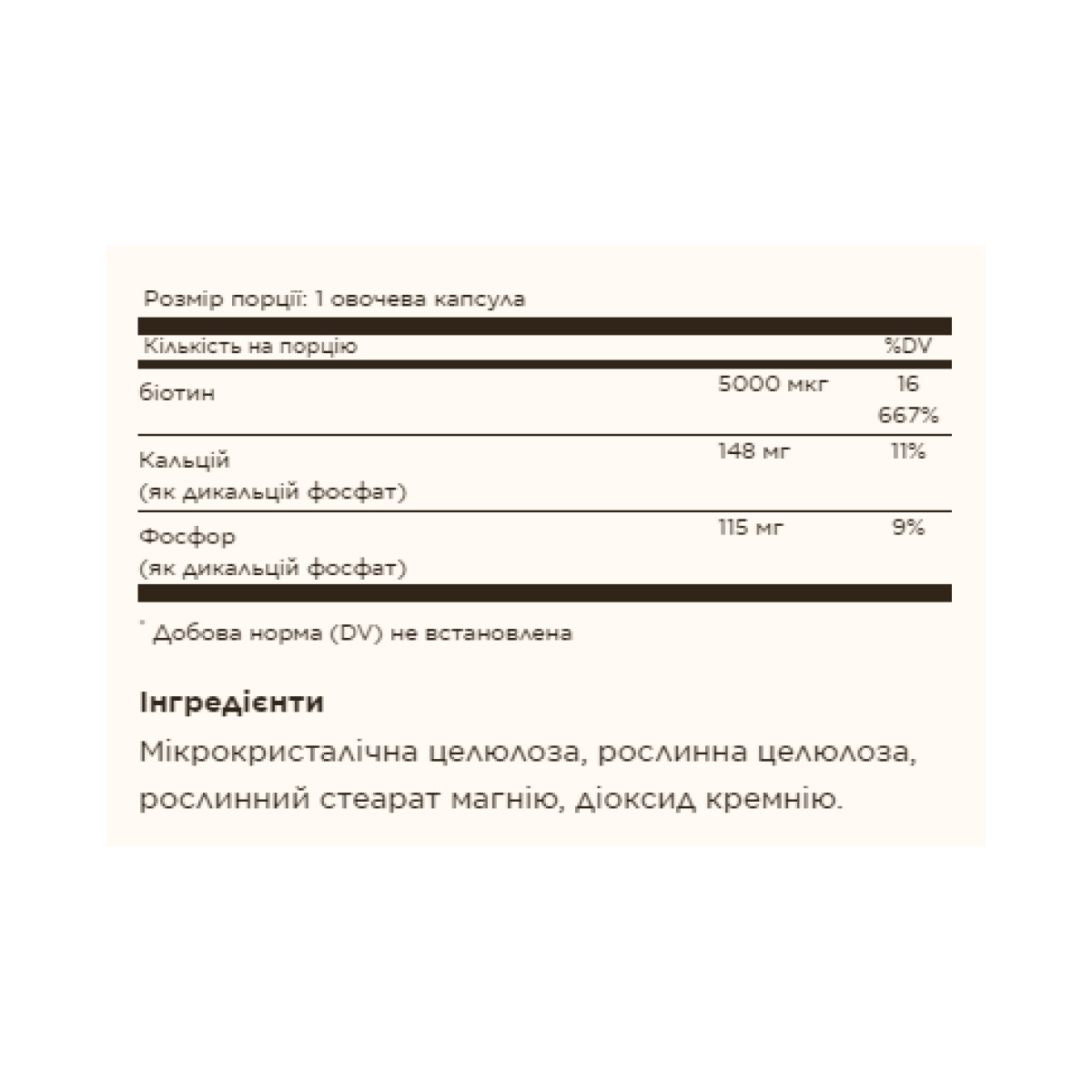 Біотин — це водорозчинний вітамін групи В. Він допомагає підтримувати здоров’я шкіри, нігтів та волосся, і необхідний для належної роботи певних ферментів. Крім того, біотин сприяє виробництву енергії в організмі шляхом перетворення їжі в енергію. Він необхідний для метаболізму білків, вуглеводів і жирів.