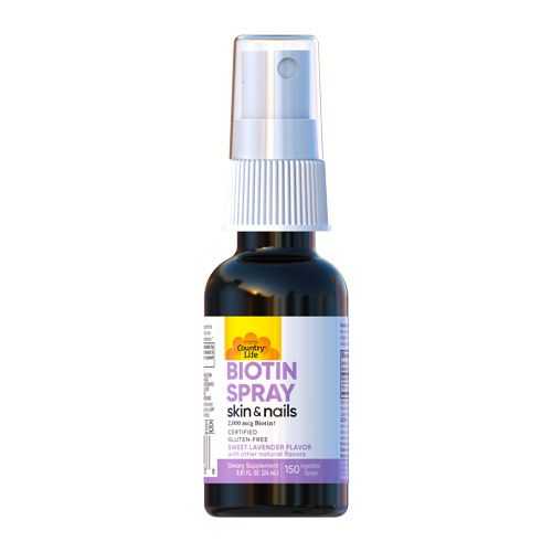 В даній формі біотин суспендований на основі масла МСТ з нульовим вмістом калорій і цукру. МСТ отримують з кокоса – корисного жиру, який тіло людини використовує для перетворення в кетони. Country Life – лідер з виробництва вітамінів групи B – тепер пропонує свої біотинові спреї, які легко взяти з собою. Кожна порція доставляє організму 2000 мкг біотину з чудовим ароматом солодкої лаванди.