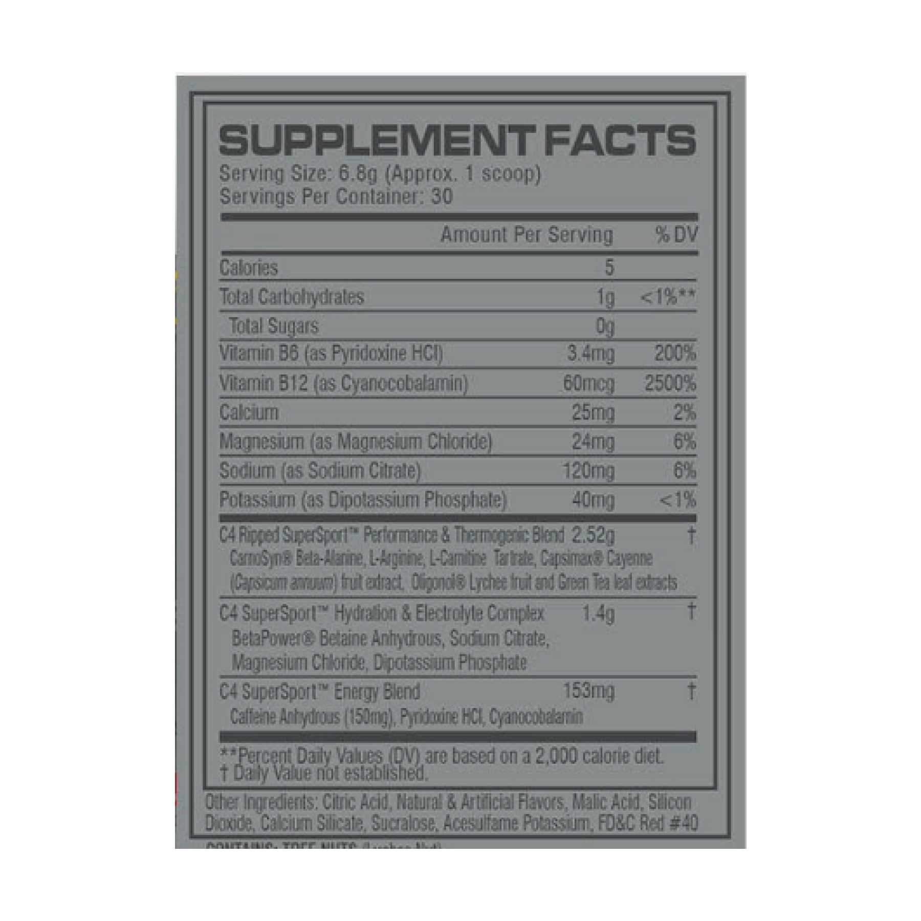 Завдяки інгредієнтам, які підтримують енергію, спалюють жир, зволожують і прискорюють метаболізм, C4 Ripped SuperSport™ допомагає досягти ваших цілей.