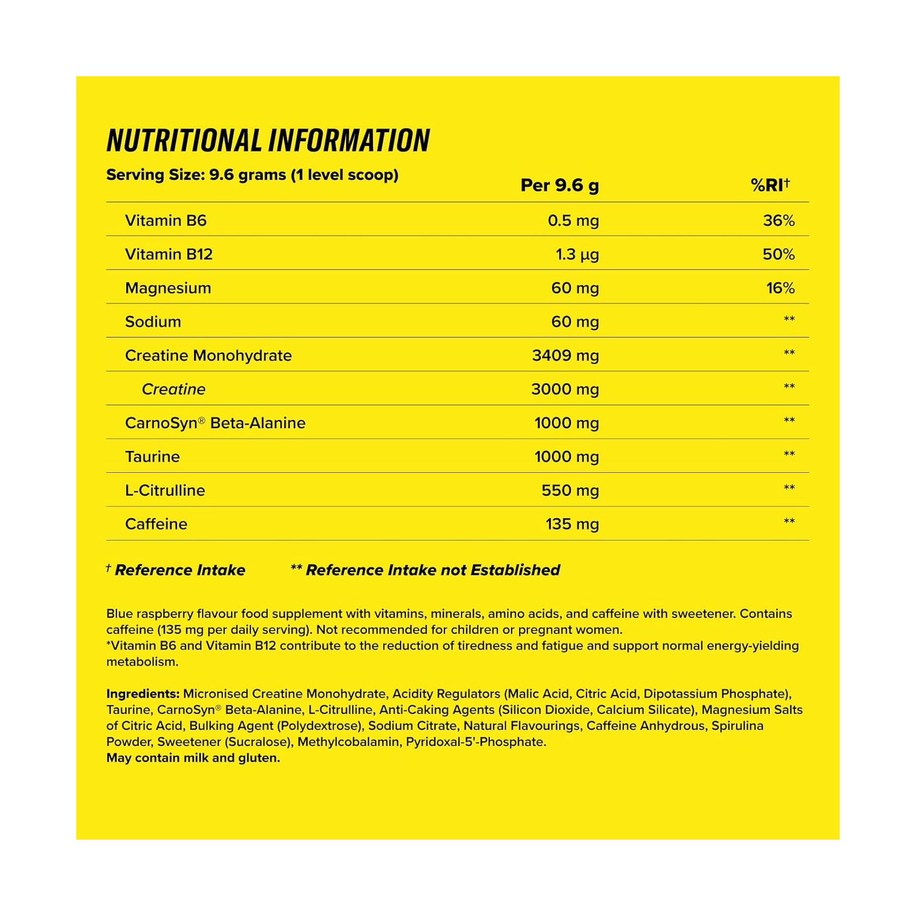 Змішайте 1 порцію (1 мірна ложка = 9,6 г) у 250 мл води та вживайте за 20-30 хвилин до тренування.