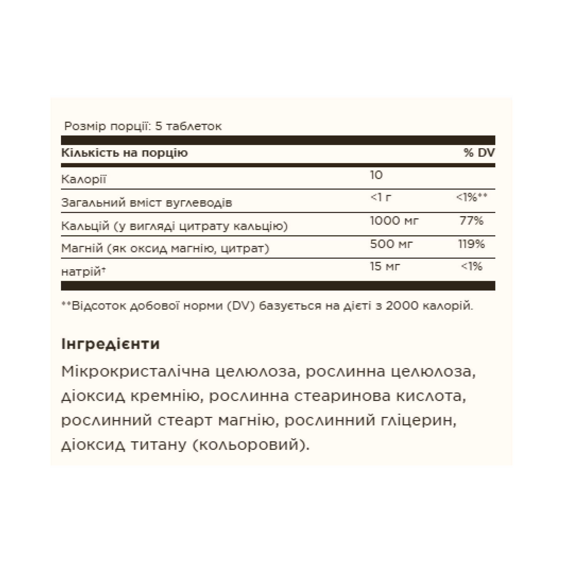 Кальцій є будівельним матеріалом, який допомагає підтримувати міцність і здоров’я кісток і зубів. Він також підтримує кістково-м’язову та нервову системи, а також бере участь у регуляції серцебиття. Магній допомагає регулювати транспорт кальцію та стимулює секрецію кальцитоніну, гормону, який допомагає у надходженні кальцію в кістку. Він відіграє важливу роль у формуванні білка та здоровій роботі м’язів. Ця формула містить високоякісні засвоювана цитратна форма кальцію. Достатня кількість кальцію протягом усього життя, як частина добре збалансованої дієти, може зменшити ризик остеопорозу.