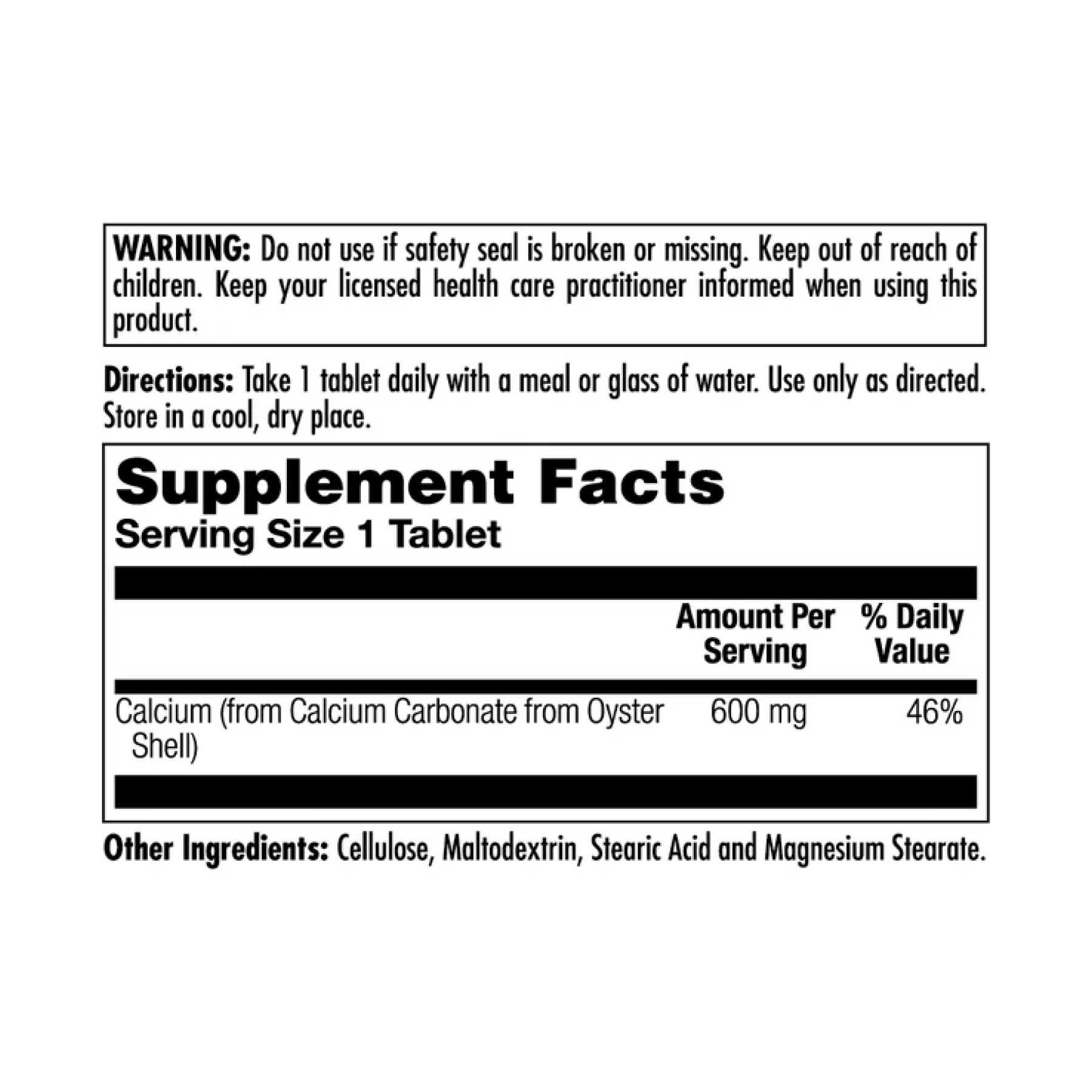 Calcium Oyster Shell 600mg – 100 tabs