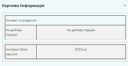 Кожна капсула містить 125 мг білої квасолі, яка містить фазеоламін – інгібітор ферменту альфа-амілази. Високоякісна добавка для повсякденного використання, вона стане чудовим доповненням до вашої дієти під час фітнес-подорожі. Натуральний харчовий екстракт 125 мг екстракту білої квасолі на порцію Отримано з Phaseolus vulgaris екстракт білої квасолі ідеально поєднується зі збалансованою дієтою та ідеально підходить для будь-яких тренувань. Він випускається в дійсно зручній формі капсул – це означає, що де б ви не знаходилися, чим ви займалися, ви завжди можете взяти одну перед їжею з високим вмістом вуглеводів.