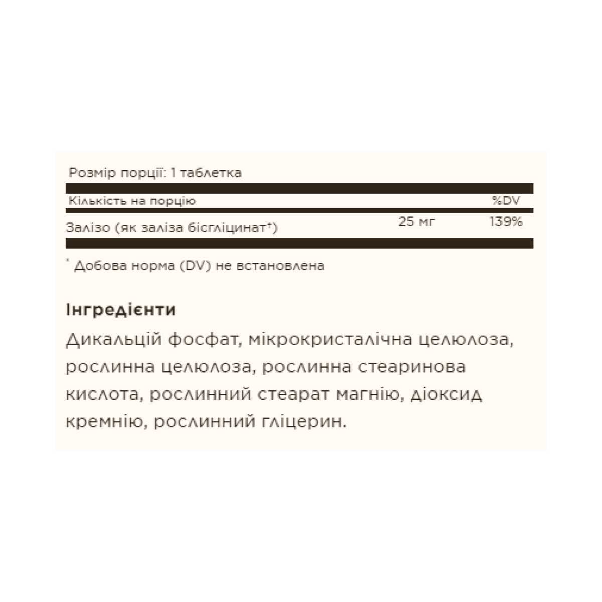 Залізо — це важливий компонент гемоглобіну, білка, який переносить кисень з легень у всі тканини організму і сприяє насиченню крові залізом. Залізо підтримує вироблення червоних кров'яних тілець і використання вироблюваної в організмі енергії. Даний препарат містить поліпшену запатентовану форму заліза, яка має м'яку дію на шлунок.