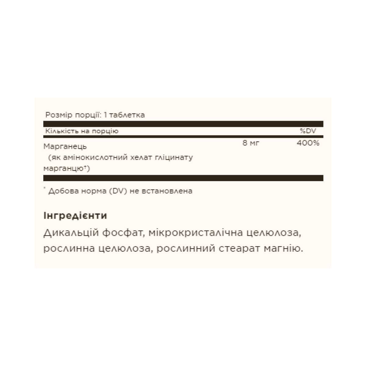 Марганець підтримує здоров’я кісток і відіграє важливу роль у здоровій роботі суглобів. Ферменти, які містять марганець, необхідні для виробництва здорових хрящів. Марганець також підтримує нервову систему та разом із супероксиддисмутазою (СОД) діє як антиоксидант у клітинах. Ця формула містить запатентовану форму хелатного марганцю.