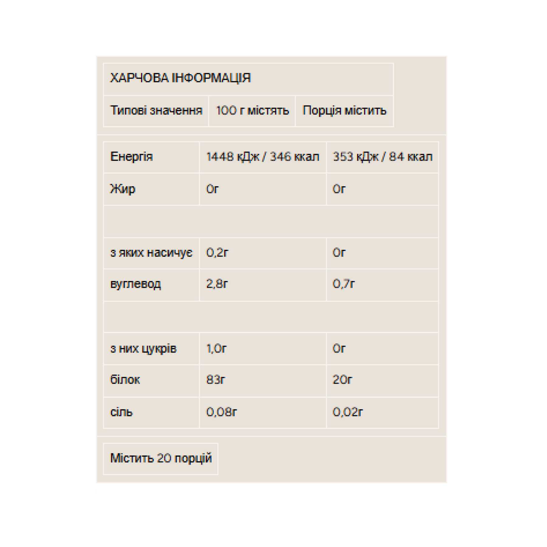 20 г білка на порцію з гідролізованого ізоляту сироваткового білка, що швидко засвоюється