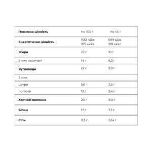 Кокосова стружка 21-24% в складі – містить харчові волокна, і відмінно очищає кишечник від шлаків і токсинів. Кокосовий горіх багатий вітамінами, мікро – і макроелементами. Він містить лауринову кислоту, яка нормалізує рівень холестерину в крові.