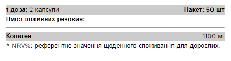 Упаковка: 100 капсул (50 порцій) – 1 порція: 2 капсули