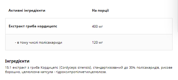 Солідна доза – 120 мг полісахаридів в кожній капсулі.