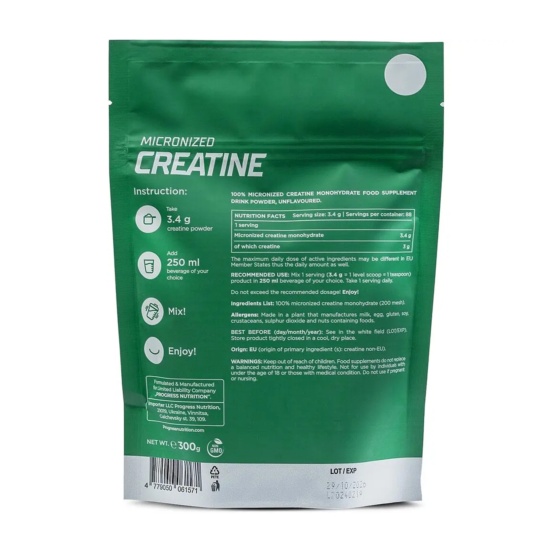 Progress Nutrition Creatine Monohydrate – моногідрат креатину у формі розчинного порошку. Прийом добавки збільшує запаси власного АТФ, що дозволяє тренуватися довше та ефективніше. Продукт чудово підходить спортсменам-силовикам будь-якого рівня підготовки.