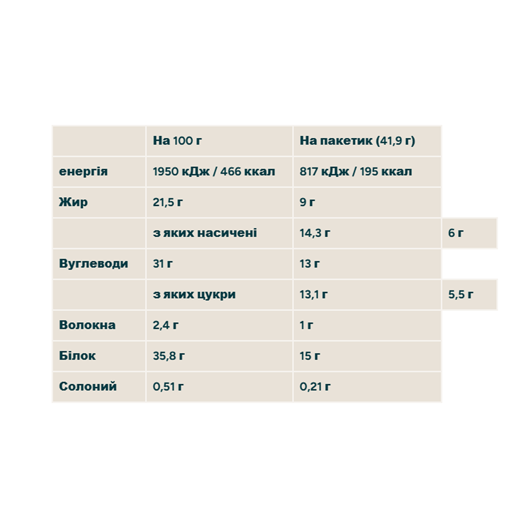 На 60% менше вуглеводів і на 20% менше жиру, ніж аналоги з супермаркетів