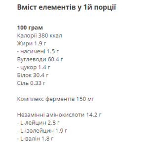 Висока кількість білка для підтримки фізичних навантажень.