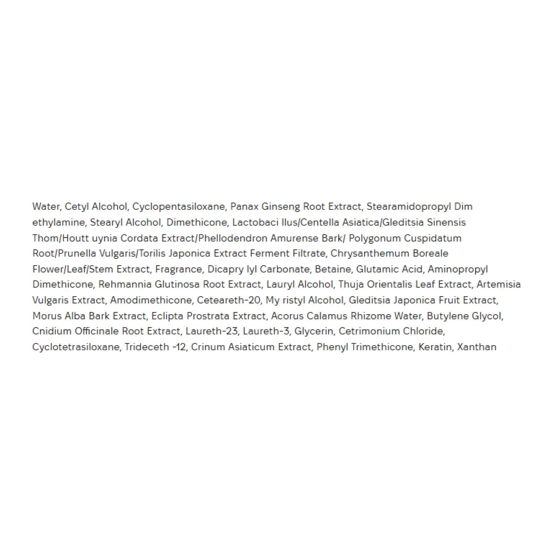 Екстракт женьшеню – активізує синтез колагену, прискорює мікроциркуляцію крові, завдяки чому благотворно впливає на волосяні цибулини та стимулює зростання нового волосся. Пантенол ефективний у лікуванні різних дерматологічних захворювань. Його дія спрямована на регенерацію шкірних покривів, зняття запалень, відновлення та глибоке живлення волосся.