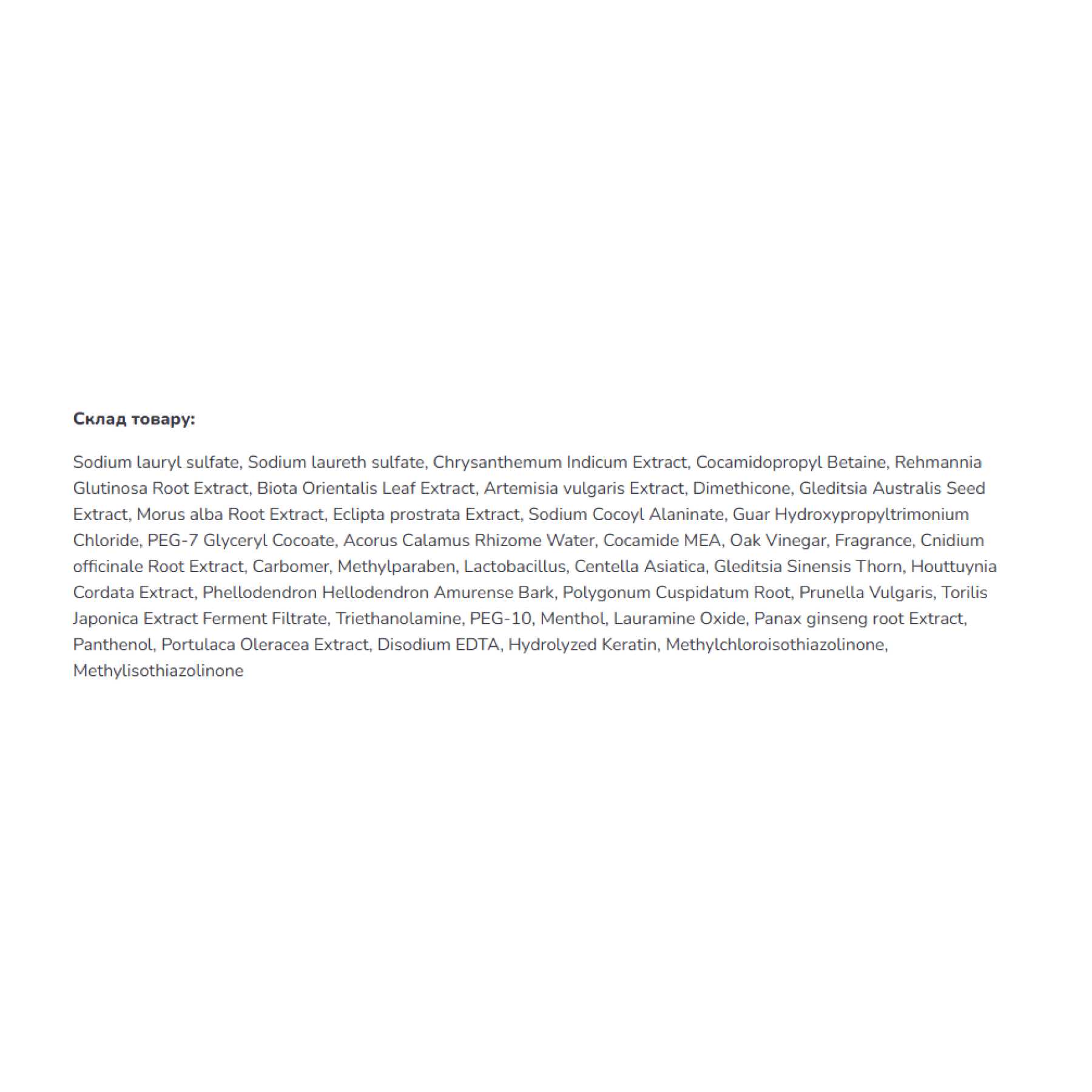 Сибірська хризантема, гледичія, тростинний аїр та інші трави, які активно використовуються у фітотерапії, мають цілющий вплив на тонус волосся, активізуючи процеси його відновлення, і завдяки цьому кучері зміцнюються та стають більш стійкими до зовнішнього агресивного впливу. Інтенсивне застосування шампуню робить волосся слухнянішим, гладеньким, усуває наелектризованість.