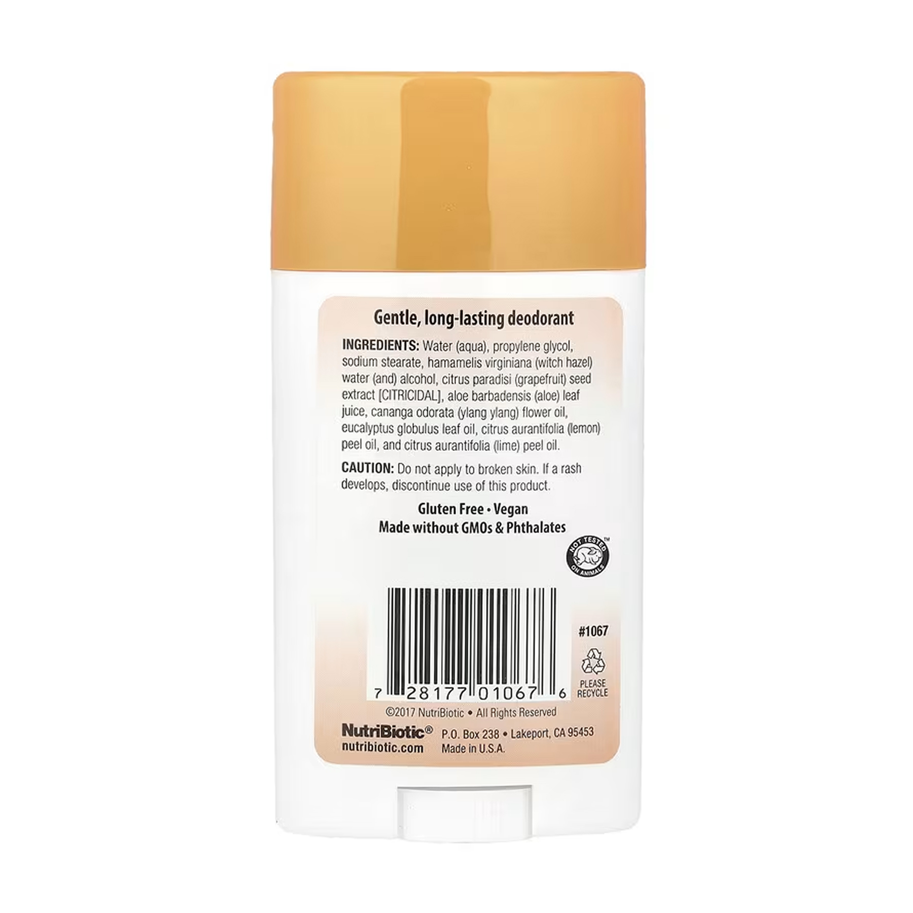 Дезодорант з ароматом манго й дині від NutriBiotic® — це ніжний дезодорант тривалої дії, що містить гамамеліс, екстракт насіння грейпфрута, алое та ефірні олії.