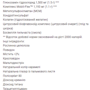 Інші інгредієнти: желатин, рослинний гліцерин, суміш натуральних токоферолів. Цей продукт містить рибні інгредієнти (анчоуси, скумбрія, сардини).
