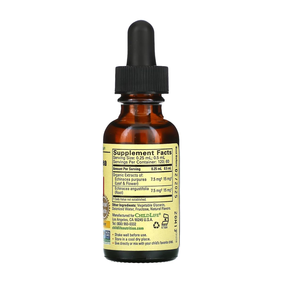 Ехінацея від ChildLife® призначена спеціально для немовлят і дітей: вирощена в органічних умовах і ароматизована натуральним ефірним маслом солодкого апельсина.