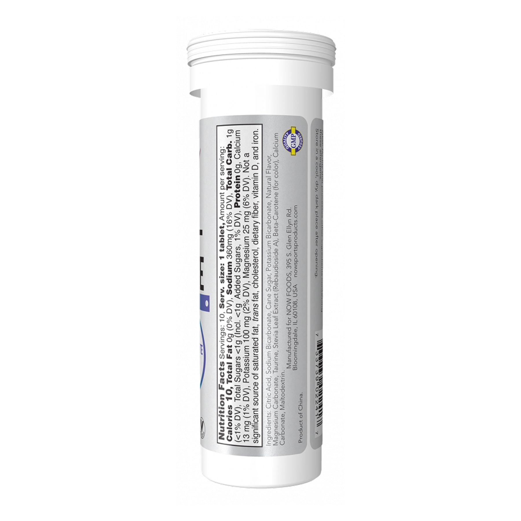 Лимонна кислота, бікарбонат натрію, тростинний цукор, бікарбонат калію, натуральний ароматизатор, карбонат магнію, таурин, екстракт листя стевії (ребаудіозид А), бета-каротин (барвник), карбонат кальцію, мальтодекстрин.