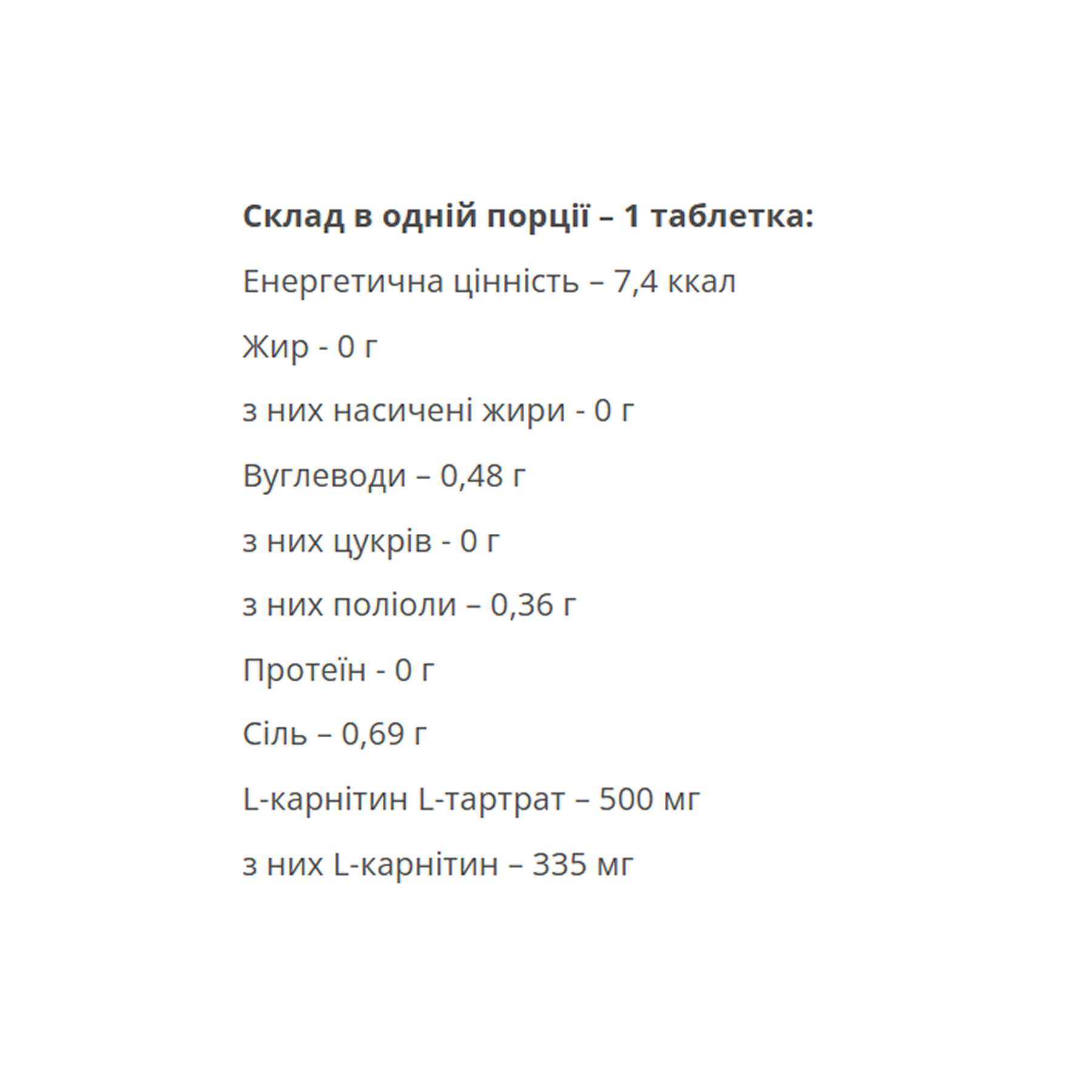 L-карнітин — амінокислота, виконує в організмі низку найважливіших функцій, зокрема стимулює утилізацію підшкірного жиру та сприяє зниженню рівня холестерину в крові.
