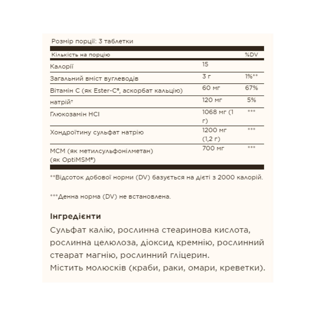 Таблетки з глюкозаміном, хондроїтином, МСМ і Ester-C підвищеної сили від Solgar ідеально підходять для тих, хто шукає додаткову поживну підтримку для хрящів і суглобів. Ця формула спеціально розроблена для живлення суглобів і хрящів, подачі рідини в суглоби, а також підтримки гнучкості, рухливості й комфортного руху. Вона також містить Ester-C для підтримки здоров’я суглобів за рахунок забезпечення ферментів, необхідних для утворення колагену, у їхньому активному стані.
