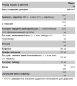 Інгредієнти: ацетил L-карнітин HCL, L-тирозин, харчовий желатин, екстракт гарцинії камбоджійської (шкірка фруктів) 5-6:1, екстракт женьшеню (корінь) 4:1, хітозан (ракоподібні), Caffeine® (натуральний безводний кофеїн ). кавові зерна), альфа-ліпоєва кислота, екстракт SlenderBean® Coffea Robusta (насіння) 12:1 [SlenderBean® і Caffeine® належать Cambridge Commodities Limited. ліцензовані торгові марки.], Zingiber officinale (корінь) екстракт 20:1, барвник (оксид заліза), хрому піколінат.