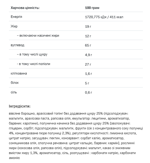 БЕЗ ДОДАВАННЯ ЦУКРУ АБО ПАЛЬМОВОЇ ОЛІЇ