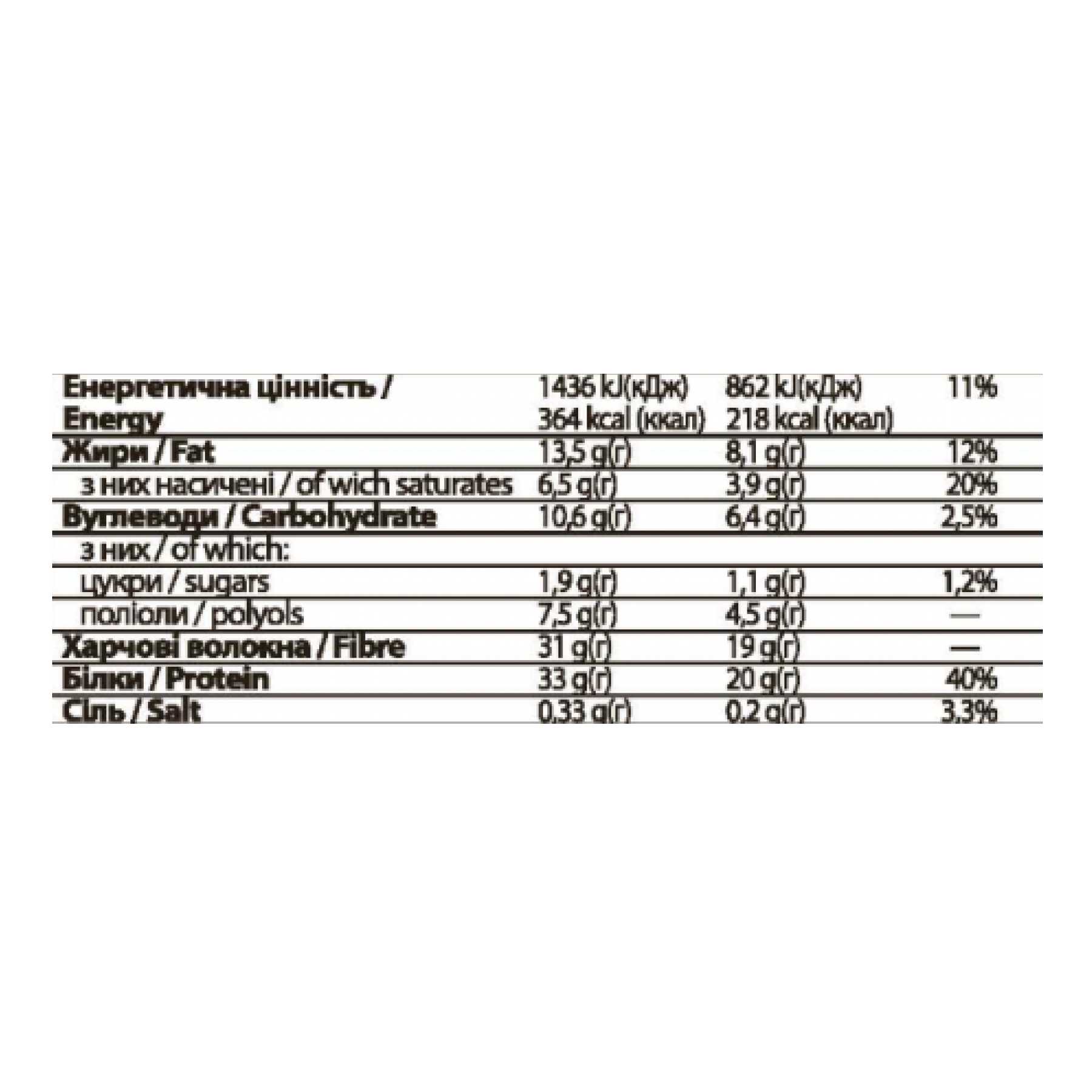 високий вміст протеїну – 20 грамів білка на кожен 60-грамовий батончик!