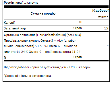 Забезпечує високу концентрацію омега-3 альфа-ліноленової кислоти
