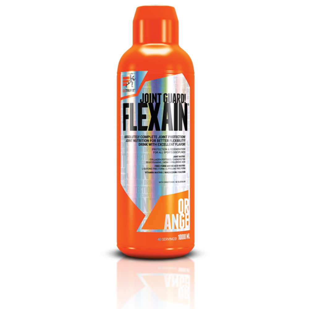 Flexain Liquit ExTrifit – це абсолютно інноваційний, дуже потужний та високофункціональний препарат для суглобів від Extrifit®! FLEXAIN містить комбінацію речовин, які необхідні для правильної функції суглобів: гідролізат колагену (пептиди колагену), ЧСЧ, хондроїтин сульфат, глюкозамін сульфат, гіалуронову кислоту, мінерали кальцій і магній, а також вільні амінокислоти пролін і гліцин, яких особливо вітамін С сприяє нормальному функціонуванню кровоносних судин, хрящів та кісток. Переваги Flexain Liquit ExTrifit: 19 складових! Найбільша кількість інгредієнтів для суглобів Найбільша сила активних речовин для суглобів у добовій дозі Рідка форма забезпечує чудове поглинання та рівень використання агентів суглобами Повністю без наповнювачів, загусників, хімічних барвників… колагену Вільна форма амінокислот L-проліну та L-гліцин для суглобів Мінерали магній і кальцій для суглобів – оптимальних 15% від рекомендованої добової дози (РСНП) 10 вітамінів для правильної функції суглобів – у всіх підібрано 100% від рекомендованої добової норми (РСН цукру! Жодного жиру! 40 доз в одній пляшці Дуже смачний напій з фруктовим смаком Підходить навіть за найсуворішої дієти! Склад порції (50 мл): Енергетична цінність – 34 ккал Жири – 0 г Цукор – 1,4 г Клітковина – 0 г Білки – 5 г Вітамін B12 – 0,0025 мг Гідролізат колагену – 5000 мг МСМ – 2000 мг мг Хондроїтин сульфат – 800 мг Гіалуронова кислота – 20 мг Пролін – 500 мг Гліцин – 500 мг Кальцій (лактат кальцію) – 120 мг Магній (цитрат магнію) – 56 мг Вітамін С – 80 мг Вітамін B3 (ніацинамід) – 1 – 12 мг Вітамін B5 (D-пантотенат кальцію) – 6 мг Вітамін В2 (рибофлавін) – 1,4 мг Вітамін B6 (піридоксин гідрохлорид) – 1,4 мг Вітамін В1 (тіамін мононітрат) – 1,1 мг Фолієва кислота – 0 2 мг Біотин – 0,05 мг