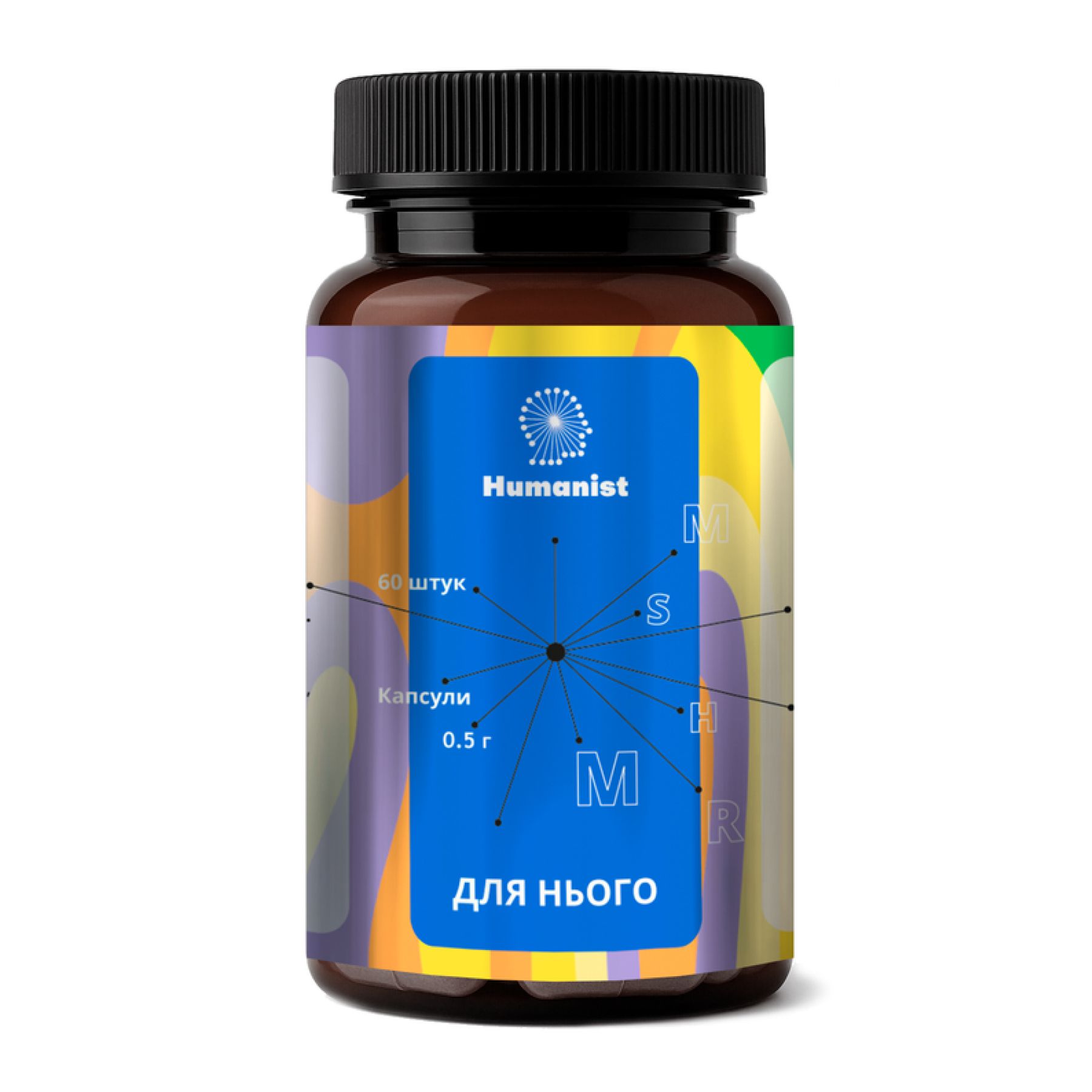 Капсули “Для Нього” Humanist Natural Vitality Мікродозинг. Чоловіча сила. Тонус. Капсули “Для Нього” створені для підтримки чоловічої енергії, підвищення витривалості та покращення потенції. Вони поєднують в собі мухомор червоний і активні адаптогени, такі як мака перуанська, левзея, женьшень та йохімбе. Ці компоненти стимулюють фізичну та ментальну активність, підвищуючи рівень тестостерону і покращуючи загальний фізичний стан. Мухомор має м'який заспокійливий ефект, допомагаючи знизити психоемоційне напруження та стрес. Humanist створює продукти, які підтримують натуральну силу та баланс в організмі. Капсули “Для Нього” допомагають повернути енергію і зберегти баланс навіть у найскладніших ситуаціях.