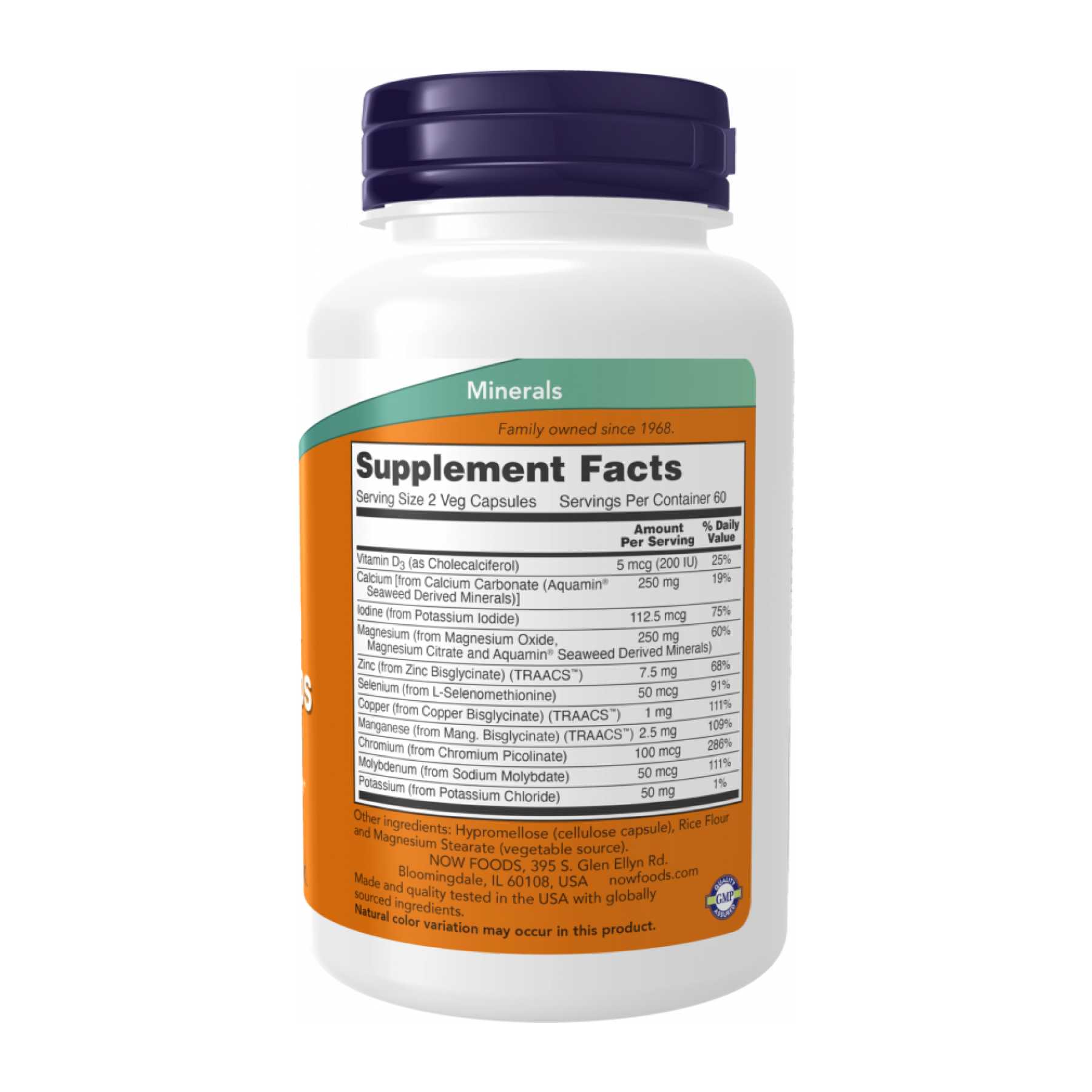 Капсули з мікроелементами повного спектру від Now — це комплексна комбінація найважливіших харчових мікроелементів, що використовуються організмом. Ця формула містить рекомендовані кількості незамінних мікроелементів, включаючи кальцій для зміцнення кісток і зубів, а також цинк для підтримки імунної системи. Капсули з мікроелементами повного спектру — це добавка, що не містить заліза та має співвідношення кальцію й магнію 1:1.