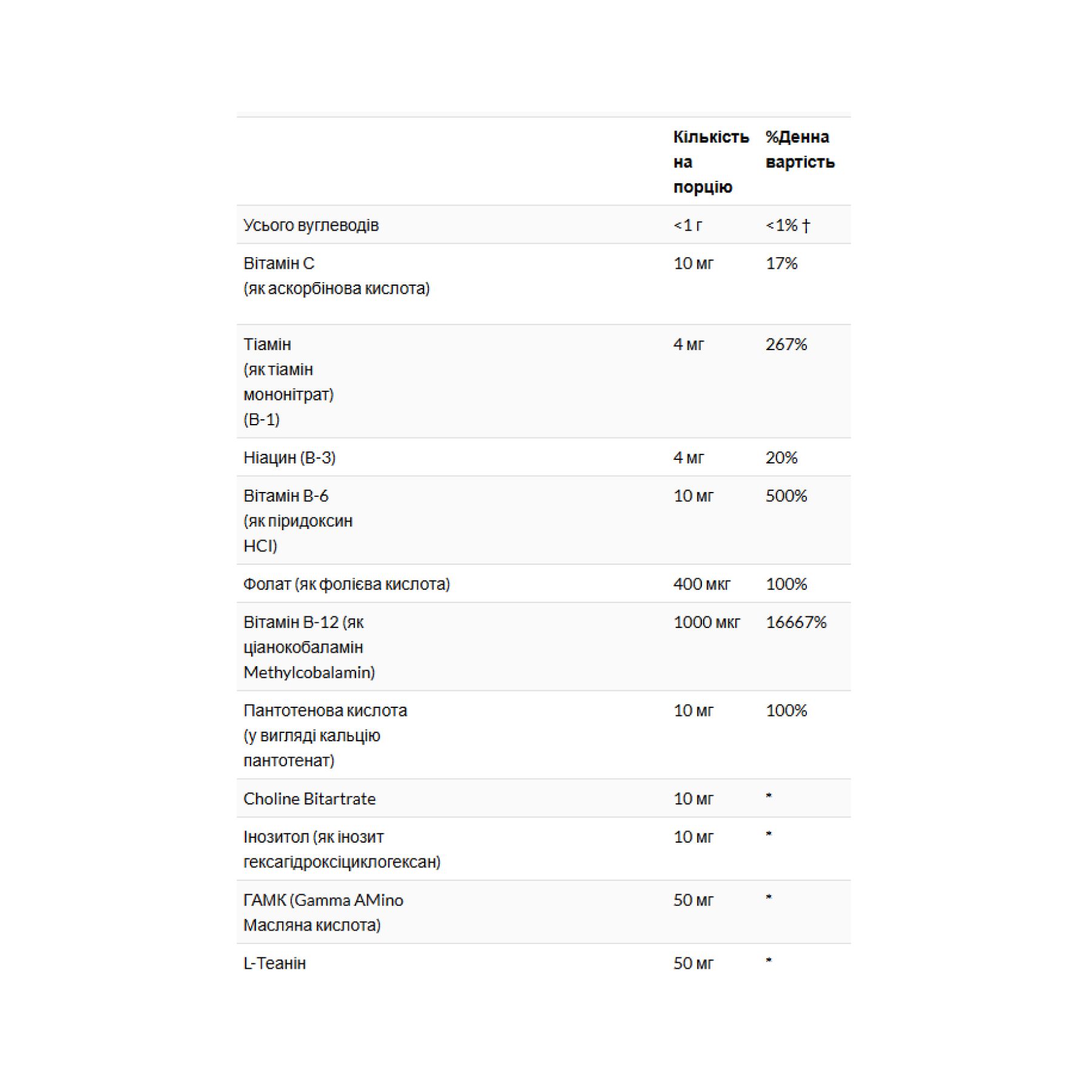 ГАМК L-теанін (GABA L-Theanine Stress B Lozenge) – амінокислота, якої найбільше в чайному листі. Цей натуральний нейромедіатор проникає в мозок і перетворюється на гамма-аміномасляну кислоту (ГАМК).